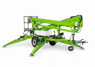 Options: TM50HG portable boom lift on two wheel trailer, Honda gas engine, hydraulic pump, 50′ reach, 500 lb. capacity, four outriggers